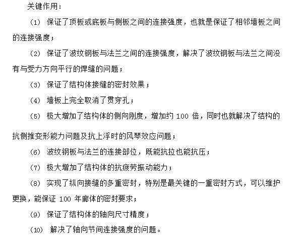 1、材料:墻板采用波紋鋼板作為主體,以縱向法蘭、周向法蘭及其他結構件以附件,焊接后組合成標準的鋼結構地下墻板構件。材質(zhì)是 Q345 鋼板或 Q420 鋼板,裝配用的螺栓采用埋地專(zhuān)用耐腐蝕碳素結構鋼螺栓,或者采用不銹鋼螺栓。